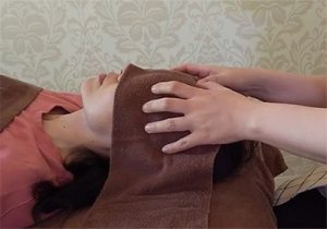 タオルの上から目の周り 頭部全体と首のコリをほぐします♪